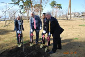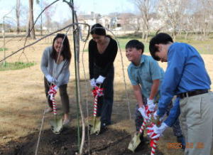 | 3月26日 午後 さくら市と姉妹都市契約を結んでいるLAのランチョパロスベルデスのご一行がさくら市を訪れ「桜見本園」でウジョウシダレを植樹しました。気温20℃を超えて暑い一日でした。 | ||||||||||||||||||||||||||||||||||